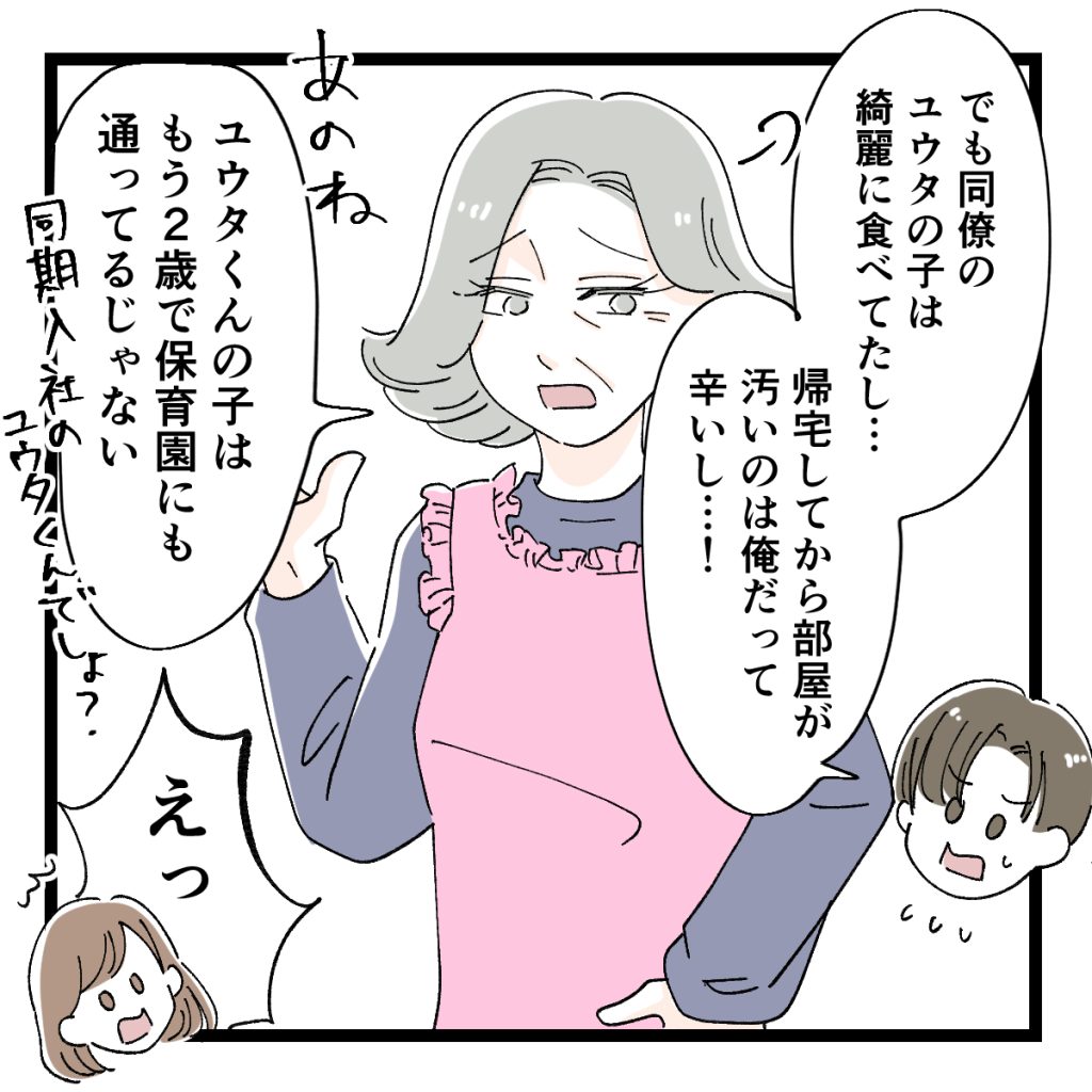 【最終話】離乳食はきれいに食べさせてね? 2025 10/24 漫画 2025年10月25日 当ブログのコンテンツには、広告を掲載している場合があります。 「散らかすのが仕事でしょ?」義母の一言で空気が一変。“帰宅して汚いなら自分で片付けなさい”の現実チェックに、夫もしゅん…。 第1話から読む方はこちら 次回漫画もお楽しみに♪ 漫画 よかったらシェアしてね! URLをコピーしました! URLをコピーしました! 【第39話】インフルエンサー気取りのママ友に狙われた件 【第68話】私の夫は感情ケチ 関連記事 【第46話】インフルエンサー気取りのママ友に狙われた件 2025年12月13日 【動画版】キャラ弁じゃないなんて可哀想!③ 2025年12月12日 【第3話】言ったことを守らないママ友 2025年12月11日 【第74話】私の夫は感情ケチ 2025年12月10日 【第2話】言ったことを守らないママ友 2025年12月6日 【第45話】インフルエンサー気取りのママ友に狙われた件 2025年12月6日 【動画版】キャラ弁じゃないなんて可哀想!② 2025年12月5日 【第73話】私の夫は感情ケチ 2025年12月3日 ママの感想・意見交換スペース コメントする コメントをキャンセルコメント ※ 名前 ※ メール ※ サイト 次回のコメントで使用するためブラウザーに自分の名前、メールアドレス、サイトを保存する。 CAPTCHA コード