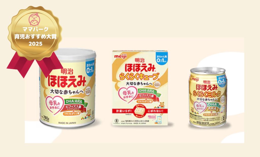 明治ほほえみミルクは、母乳をお手本に乳児の発育を目指した調製粉乳で、0〜1歳頃まで使用可能。